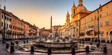 • Piazza Navona: a magnificent urban space that was built on the site of an ancient Roman stadium, and then entirely renovated in the Baroque style during the 15th century.